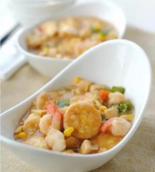 蝦仁玉子豆腐:鮮蝦去除內(nèi)臟洗凈,濾干水后放入一個(gè)碗里,加入鹽和料酒腌制10分鐘,玉子豆腐切成1厘米左右的厚片,草菇,蒜頭切片,蔥切成段,紅辣椒切成圈,鍋燒熱放入兩小勺的油,先炒蝦仁,再加入蒜片、蔥段及草菇翻炒,倒入勾芡過的淀粉和辣椒炒勻,最后將玉子豆腐放入輕輕翻炒兩分鐘左右就可以起鍋了。玉子豆腐最后放入是為了避免弄爛,這樣才能成型好看。