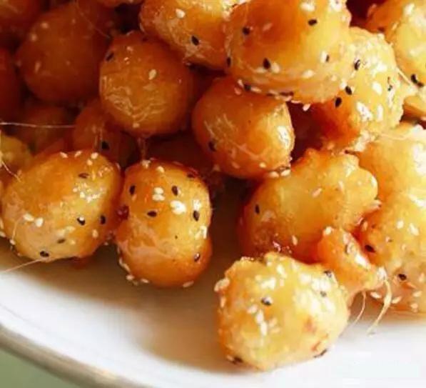 拔絲豆腐:將豆腐切成三厘米長(zhǎng)、兩厘米寬、一厘米厚的片,逐面沾勻面粉,用濕淀粉攪勻成糊,鍋內(nèi)放油燒至五成熱,將和過面粉的豆腐片掛勻淀粉糊,下鍋炸至表面金黃時(shí)撈出慮掉油,鍋內(nèi)放入少量水,開火加入白糖炒成糖漿,能拔出絲來的時(shí)候,放入炸好的豆腐翻炒掛勻糖漿,出鍋裝盤即可,食用時(shí)備上一碗涼開水。